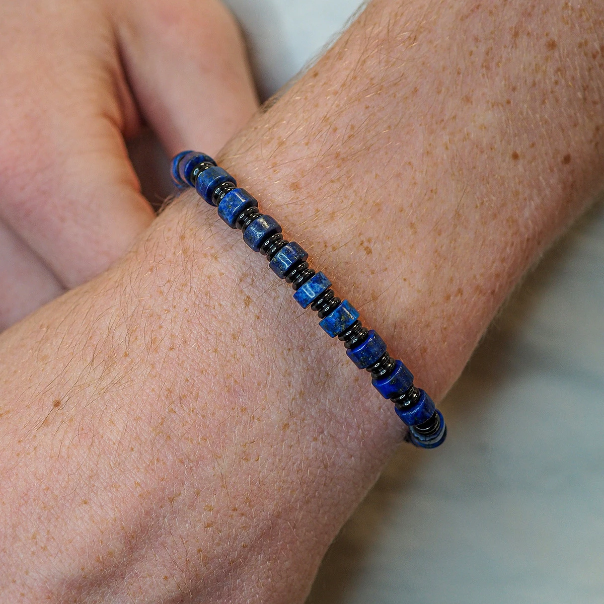 - Apportez une touche de raffinement à votre style avec ce bracelet en acier noir orné de perles de lapis-lazuli (6×4 mm). Son design élégant et intemporel se marie parfaitement avec toutes vos tenues, tandis que son réglage ajustable (18-22 cm) assure un confort optimal.