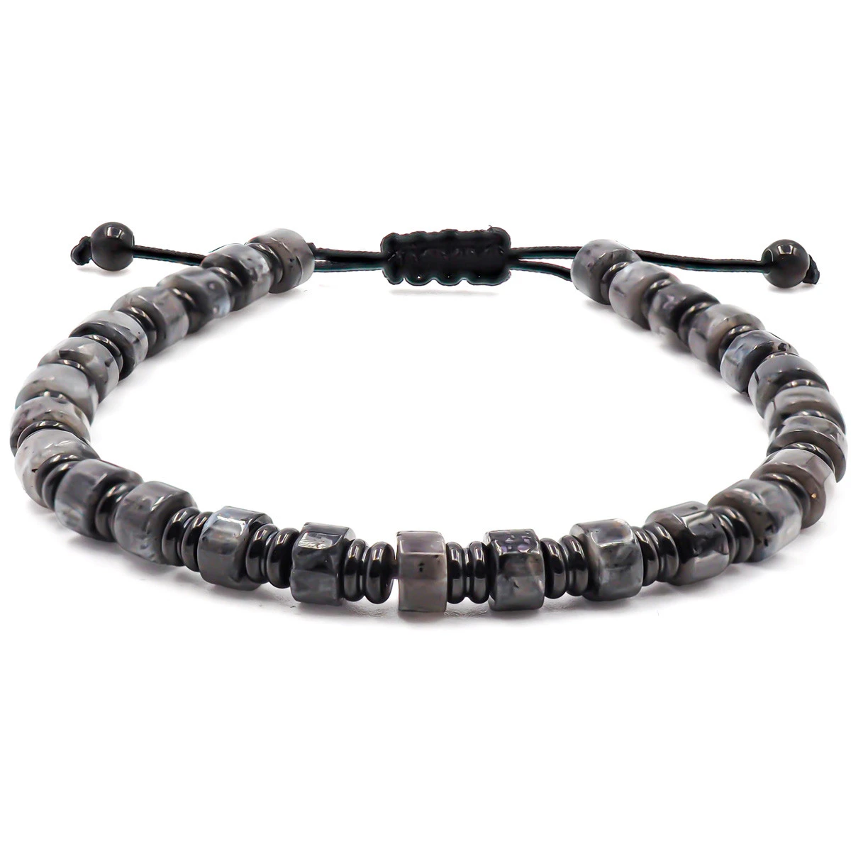 Bracelet acier noir – jaspe gris 6x4mm – réglable 18-22cm