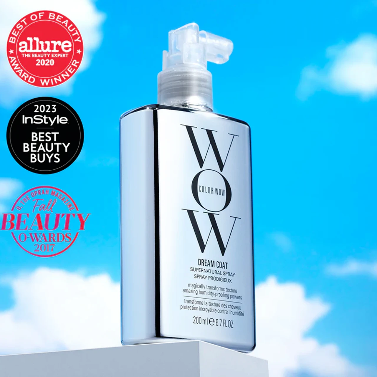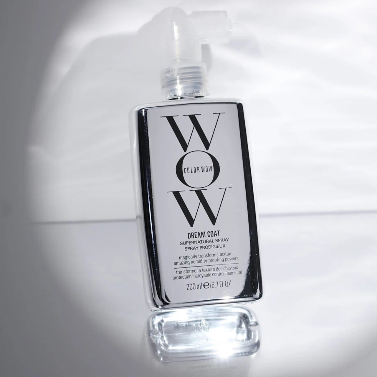 - COLOR WOW – Dream Coat Ce spray sans rinçage assure une barrière imperméabilisante jusque 72 heures (soit 2–3 shampooings), tout en conférant une brillance « miroir » inégalée. Sa formule exclusive, à base de polymère thermosensible, gaine, contracte et scelle chaque fibre capillaire. Sous l’effet de la chaleur du sèche‑cheveux, il crée autour de chaque mèche un film invisible qui repousse l’humidité et élimine instantanément les frisottis.