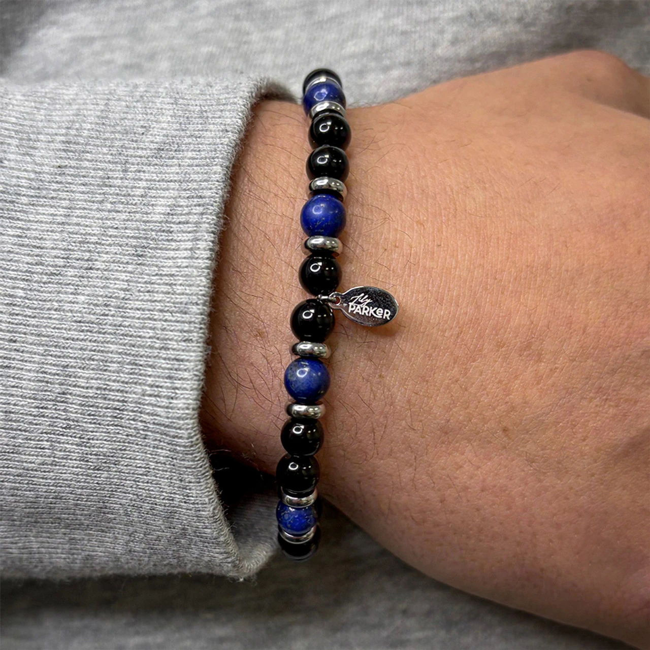 Bracelet lithothérapie « Équilibre Masculin » – Lapis Lazuli – Tourmaline noire – 20-20,5cm