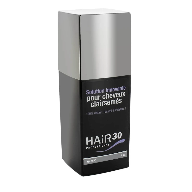 30% des trentenaires souffrent d’alopécie, 50% des plus de 50 ans ont le crâne dégarni.Hair30 est la solution innovante pour les cheveux clairsemés, racines, et cheveux blancs, aussi pour les hommes que les femmes.