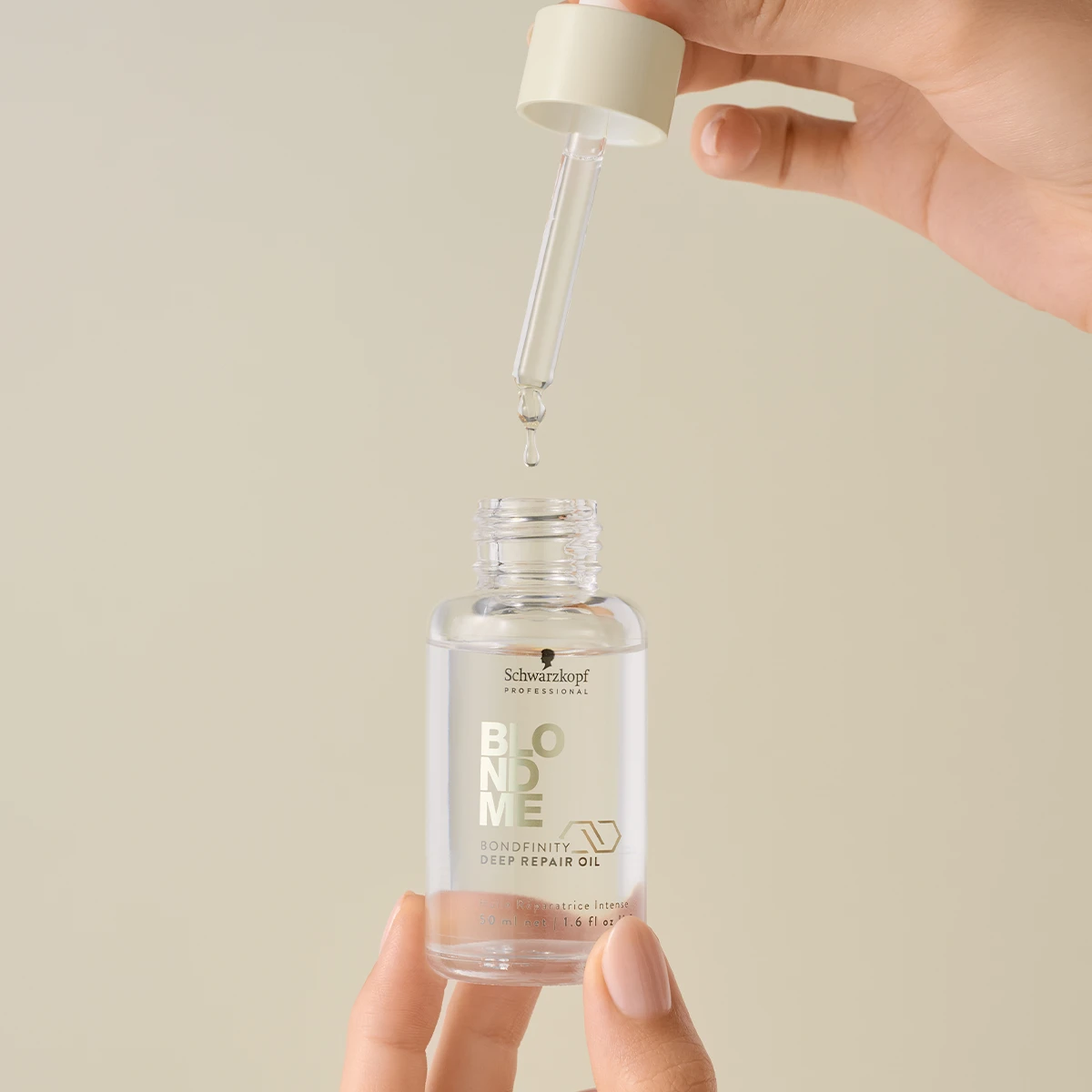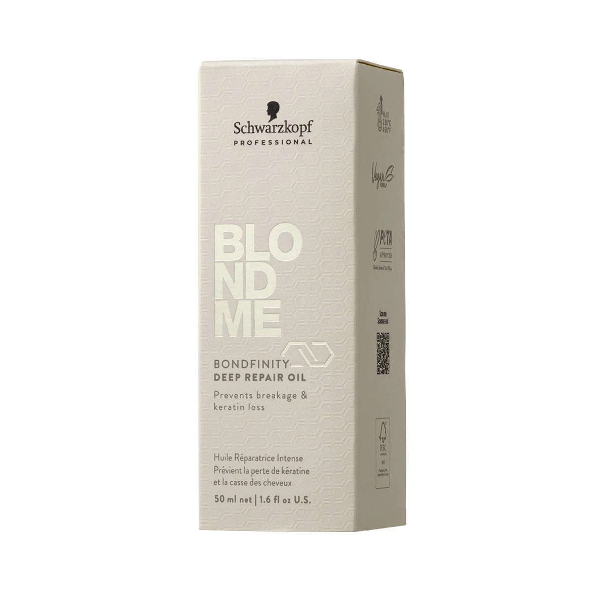- SCHWARZKOPF – Huile réparatriceL’huile réparatrice intense Blondme Bondfinity de Schwarzkopf Professional est conçue pour protéger et renforcer les cheveux blonds fragilisés, en manque de lumière.