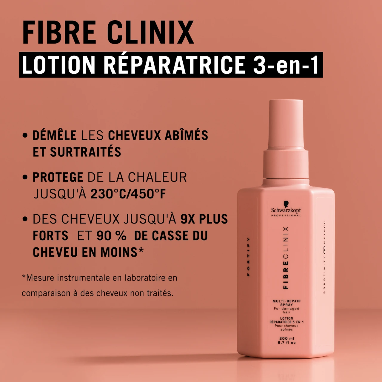 INGRÉDIENTS :Aqua (Water, Eau)*Cetearyl Alcohol*Quaternium-87*Propylene Glycol*Brassicamidopropyl Dimethylamine*Lanthanum Chloride*C10-40 Isoalkylamidopropylethyldimonium Ethosulfate*Steardimonium Hydroxypropyl Hydrolyzed Keratin*Isopropyl Myristate*Distearoylethyl Hydroxyethylmonium Methosulfate*Parfum (Fragrance)*Citric Acid*Phenoxyethanol*Polyquaternium-37*Dicaprylyl Carbonate* Niacinamide*Dipropylene Glycol*Sodium Methylparaben*Hexyl Cinnamal*Limonene*Lauryl Glucoside*Potassium Sorbate*Benzyl Alcohol. - la technologie fibre clinix schwarzkopfSchwarzkopf Professional lance un nouveau rituel de soins capillaires Fibre Clinix dédié à la transformation et à la réparation des cheveux en profondeur.Face aux agressions extérieures régulières, aux colorations répétées, à l’utilisation régulière du fer à lisser, les cheveux se fragilisent et deviennent fragiles, poreux, ternes et sujets à la casse. Pour réparer durablement la fibre capillaire soumise à un stress répété, Schwarzkopf Professional a choisi de reformuler intégralement sa ligne de soins Fibre Clinix et d’étendre sa gamme avec de nouvelles références inédites.Cette innovation nouvelle génération signée Schwarzkopf Professional allie la technologie avancée du Triple Bonding et la technologie ultra puissante du C21, un agent de soins qui cible la porosité du cheveu, afin d’offrir un service sur-mesure à l’efficacité immédiate.Composée à partir de deux innovations exclusives, Fibre Clinix bénéficie de la technologie renforçatrice de liaisons, Triple Bonding, à base d’ions trivalents permettant de créer de nouvelles liaisons à l’intérieur de la fibre capillaire grâce à la reconstruction d’un réseau tridimensionnel. La formule est complétée d’un agent de soin, baptisé le C21, qui agit à la surface du cheveu afin de reconnecter toutes les chaînes lipidiques présentes dans la cuticule.Grâce à sa galénique d’exception, la formule pénètre plus profondément dans le cortex et permet ainsi la reconstruction d’un réseau tridimensionnel à l’intérieur de la fibre capillaire. L’action ciblée du C21, quant à lui, agit sur la porosité du cheveu en rétablissant toutes les chaînes lipidiques présentes dans la cuticule. Ainsi soigné, le cheveu retrouve toute son élasticité et sa résistance.Volume, Hydratation, Couleur, Discipline, Réparation, chaque segment, représenté par un code couleur distinctif, permet donc de répondre à un besoin spécifique. Un service inédit à découvrir en salon et à prolonger à domicile pour un résultat optimal.