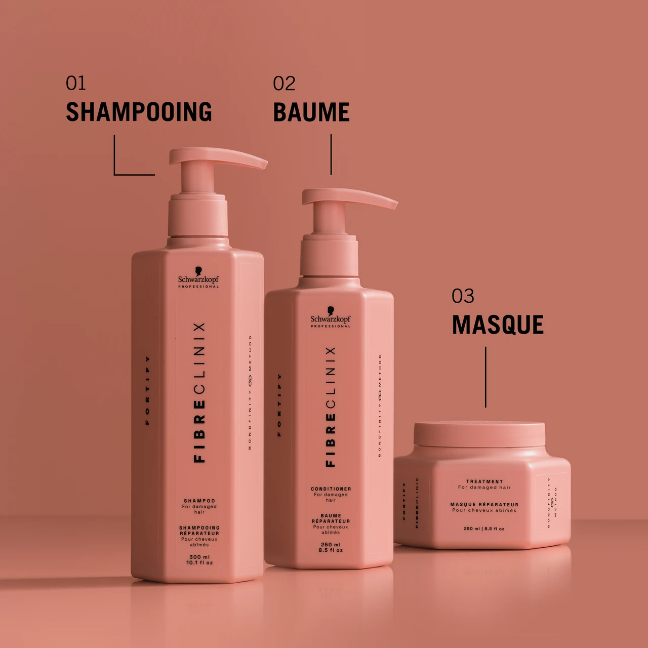 - SCHWARZKOPF – Soin réparateurAvec la technologie Triple Bonding et C21. Pour cheveux abîmés et surtraités. La formule à base de Niacinamide renforce et nourrit la fibre capillaire et permet de prolonger l’effet du service Fibre Clinix effectué en salon.