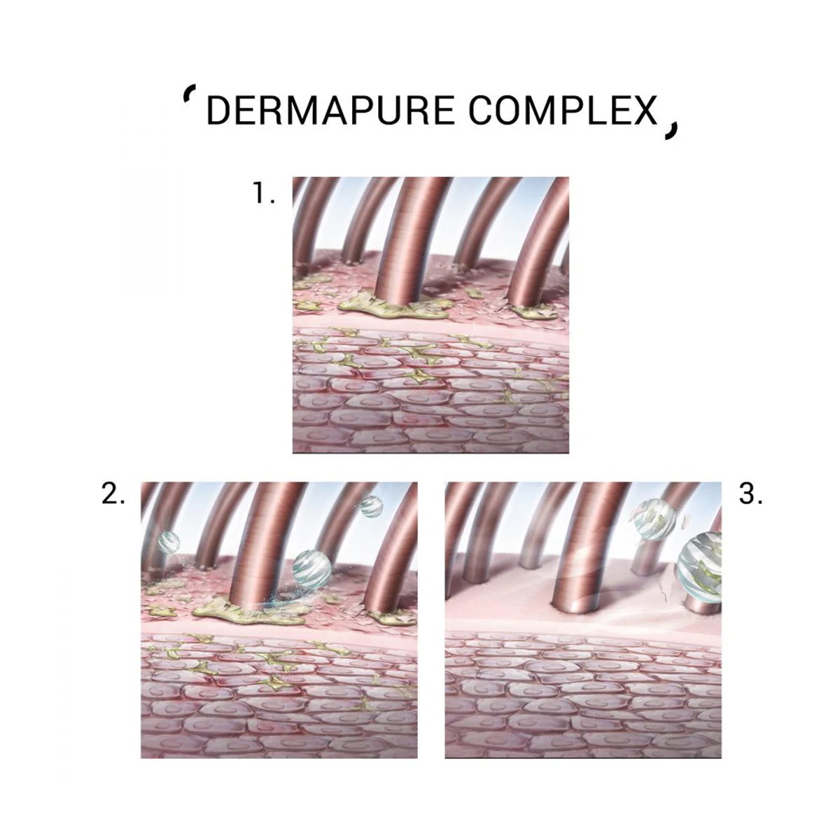 Complexe Dermapure :– Zinc Pyrithion : diminution durable des pellicules– Extrait d’Hamamélis : réduction des inflammations– Allantoïne : anti-irritante, apaise le cuir chevelu