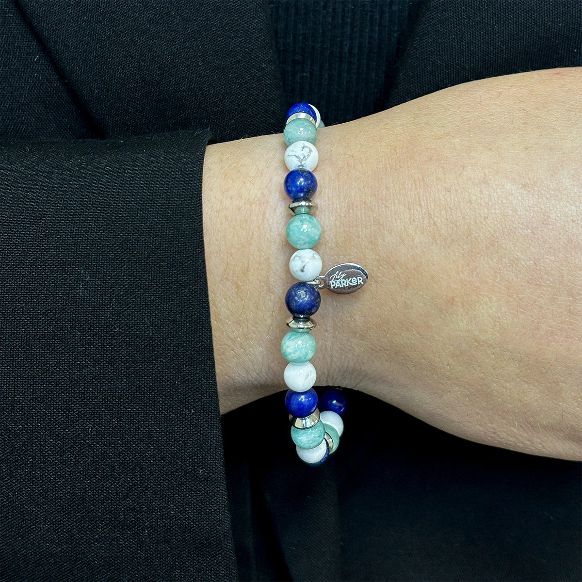 Bracelet lithothérapie « Renouveau Capillaire » – Howlite Blanche – Amazonite – Lapiz Lazuli – 18-18,5cm