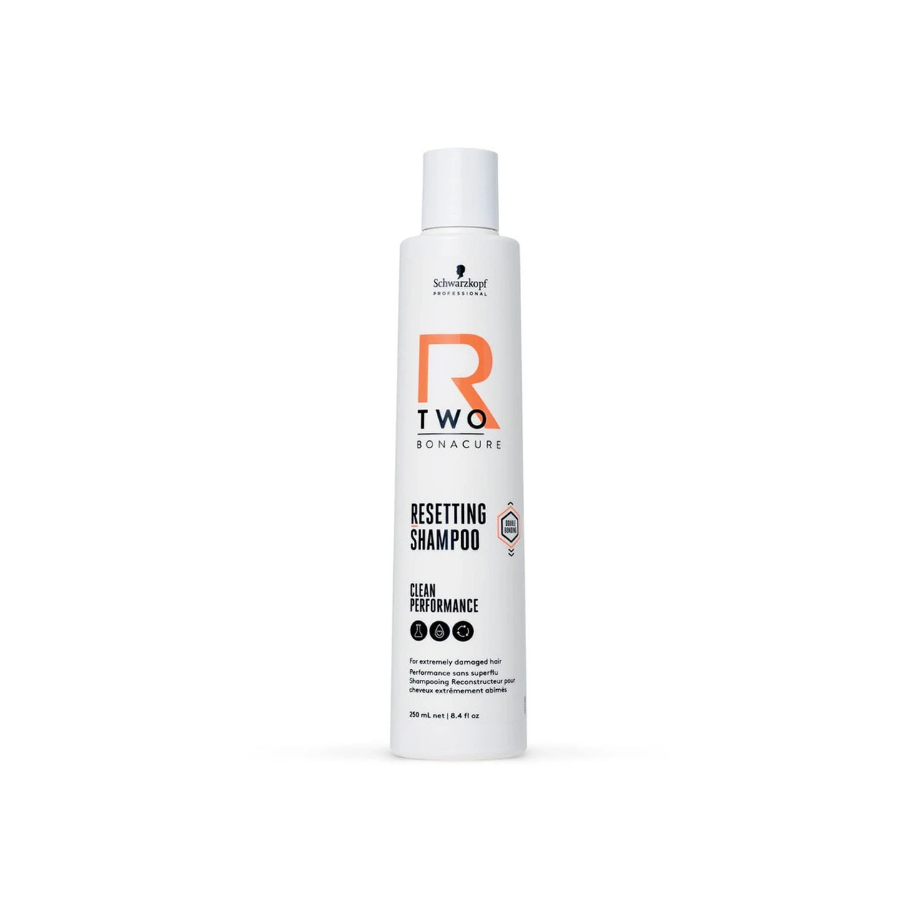 Pour des cheveux extrêment abimés, il est préconisé de poursuivre avec le masque reconstructeur R TWO ainsi que le fluide rénovateur R Two.Schwarzkopf Professional – Shampooing R-Two Bonacure 250 ml