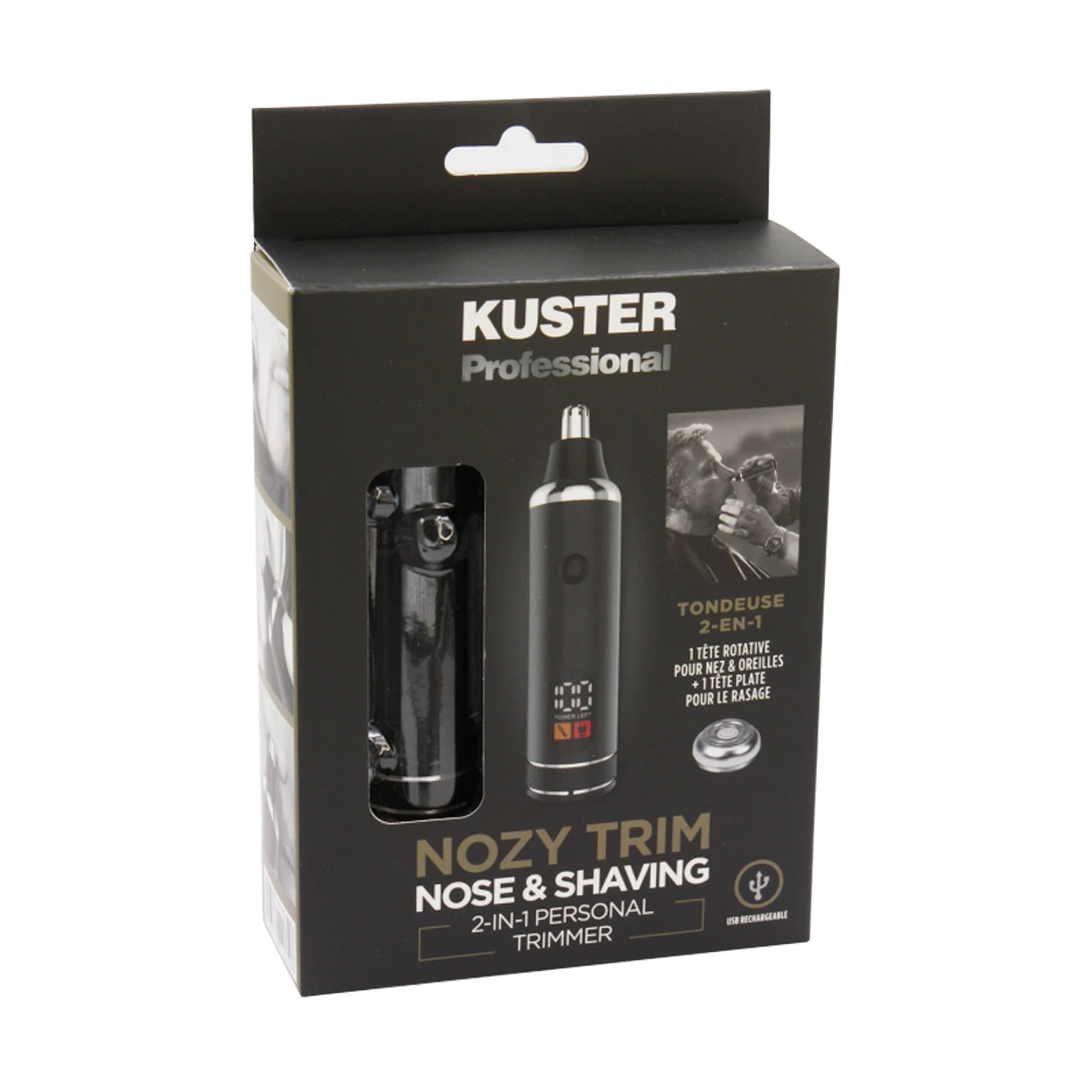 - KUSTER – Tondeuse 2 en 1 nez et oreillesTondeuse électrique 2 en 1, une tête rotative pour nez et oreille et une tête plate pour le rasage .